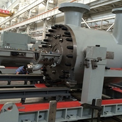 EB系列筒式離心壓縮機(jī)用石油化工領(lǐng)域,用于輸送循環(huán)氫等高壓、有毒、易燃易爆等介質(zhì)。 外缸為整體筒形,屬于單吸入、多級(jí)、高速、雙支承結(jié)構(gòu)。 可通過(guò)變速器由電機(jī)驅(qū)動(dòng)或直接由高速汽輪機(jī)或電機(jī)驅(qū)動(dòng)。 機(jī)型涵蓋共計(jì)11個(gè)機(jī)型。該壓縮機(jī)檢修維護(hù)時(shí),可直接將轉(zhuǎn)子和內(nèi)定子抽出檢修,無(wú)需拆卸管路。 進(jìn)排氣風(fēng)筒可靈活設(shè)計(jì),管口位置可根據(jù)工藝管位置而設(shè)定。 壓縮機(jī)內(nèi)缸帶有水平分型面,維護(hù)檢修方便 該系列壓縮機(jī)采用成熟可靠的模型級(jí)和先進(jìn)的氣動(dòng)計(jì)算程序,經(jīng)機(jī)組現(xiàn)場(chǎng)運(yùn)行驗(yàn)證和評(píng)估,達(dá)到了國(guó)際先進(jìn)水平。 -